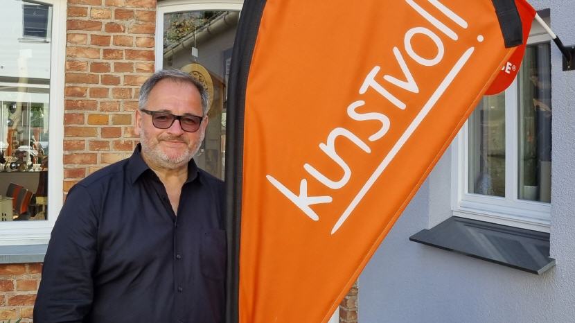 Bedingt durch die Gegebenheiten der Galerie, steht bei uns der Künstler nicht fern auf der großen Bühne, sondern ist nah am Zuschauer.
